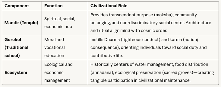 Bharat offers not just alternative answers, but a complete answer framework millennia in development. As the Western techno-materialist project accelerates toward its logical conclusion—material abundance without meaning—the relevance of this framework becomes undeniable.